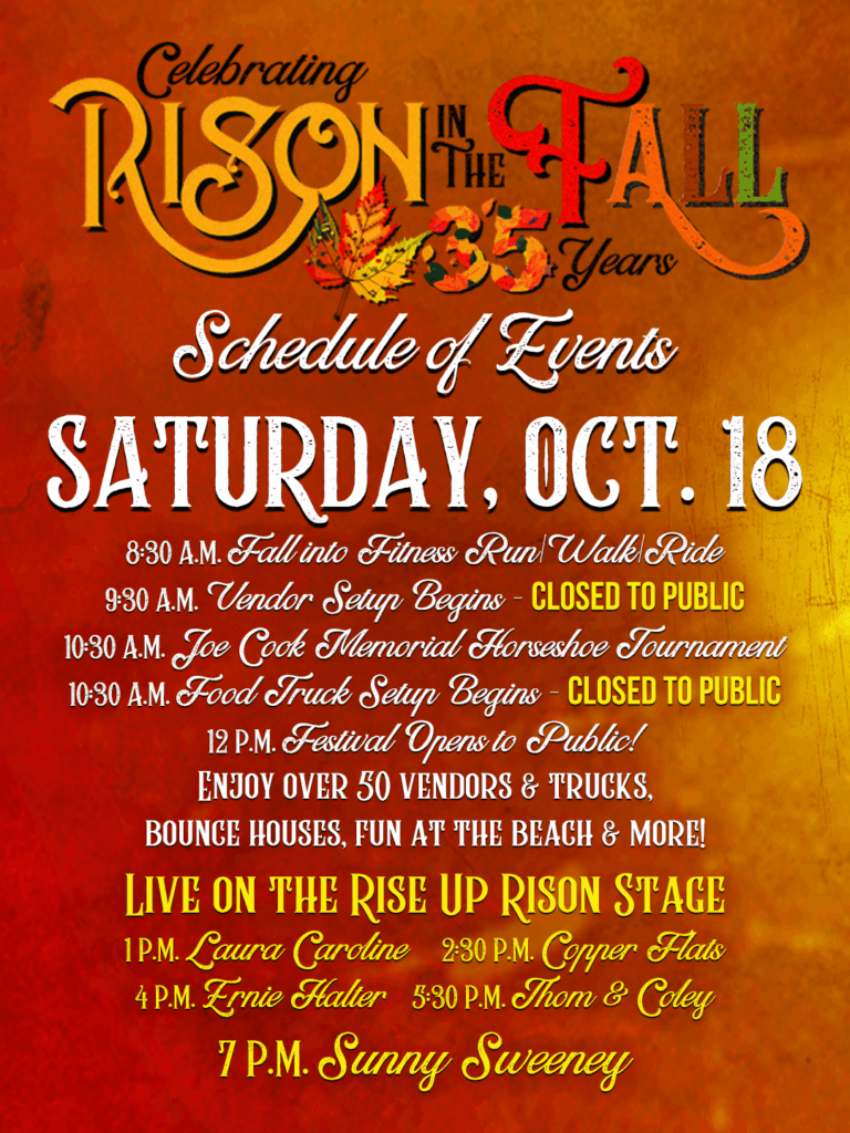 “Rison Shine is honored to commemorate 35 years of Rison in the Fall with two events that have become traditions for Rison,” said Boultinghouse. “Thanks to our generous sponsors, we have been steadily growing over the years with a strong resurgence over the past five years. And we’re aiming to continue for many more years to come!”